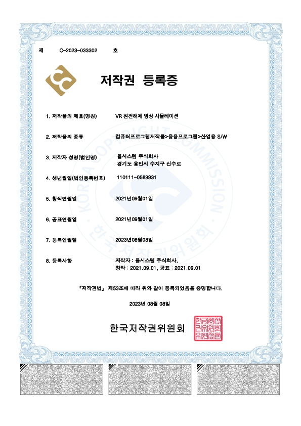 [저작권 등록] VR 원전해체 영상 시뮬레이션 페이지 정보 작성자최고관리자 댓글0 조회1,297 작성일24.05.13 14:46 본문 공유 이전글VR 분해조립시스템 24.05.13 다음글VR 원전해체 3D 시뮬레이션 24.05.13 Comment 0 댓글목록 등록된 댓글이 없습니다.